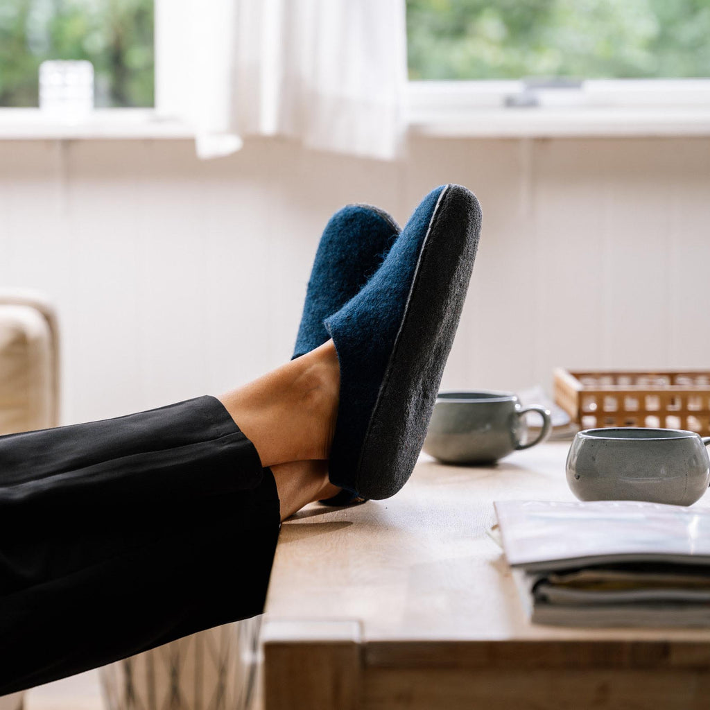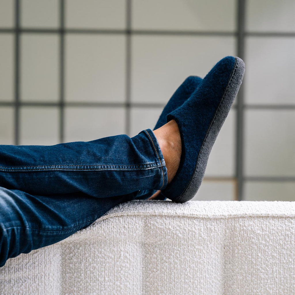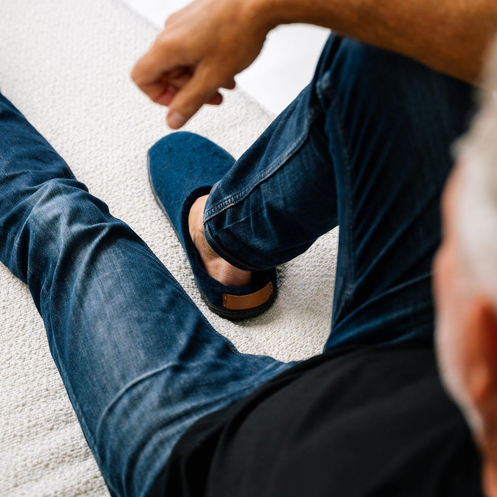 Wool2fit SlipOns er designet med en lille lav hælkap som holder dem på plads, og så de er nemme at træde ind og ud af.