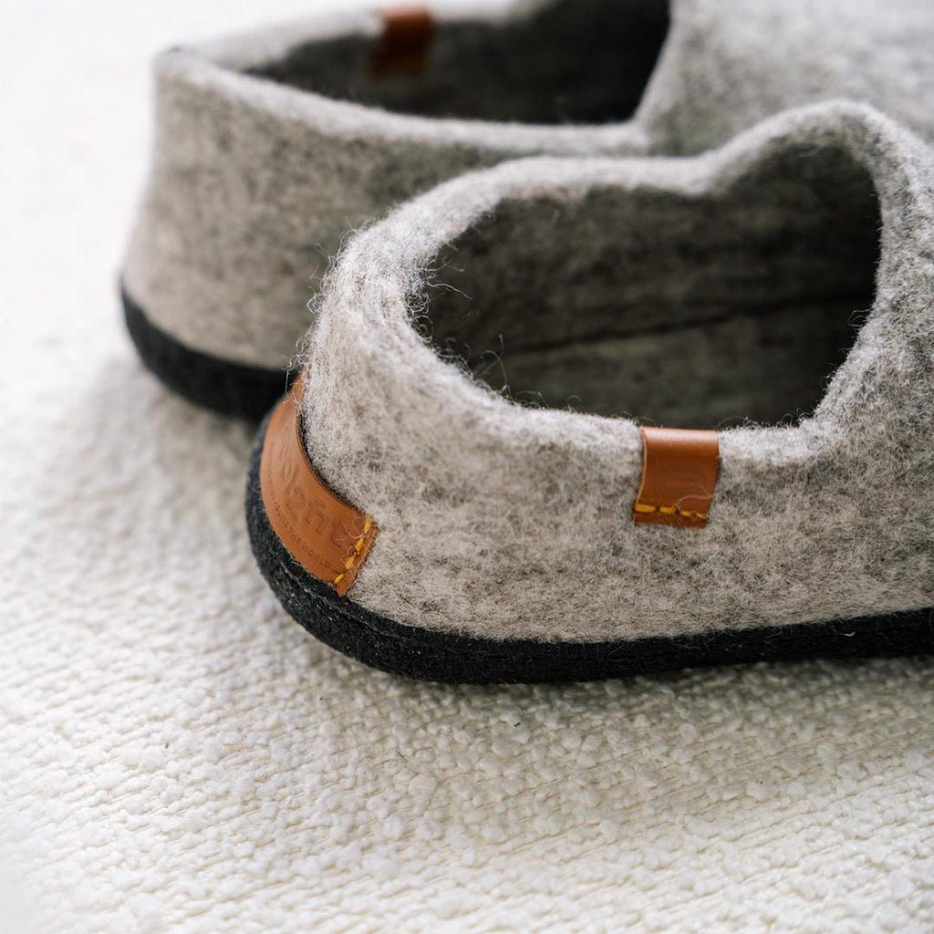 Håndfiltet uldsko / hjemmesko i ren naturlig uld.