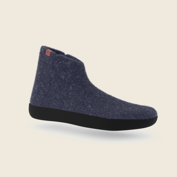 Vi tror også på, at vi kan klæ' os behageligt og smukt uden at belaste miljøet. Derfor anvender vi kun naturlige materialer, som kan høstes fra naturen, og gives tilbage til naturens eget kredsløb. Overdelen består af 100% ren naturlig uld, mens sålen er af ren naturgummi.